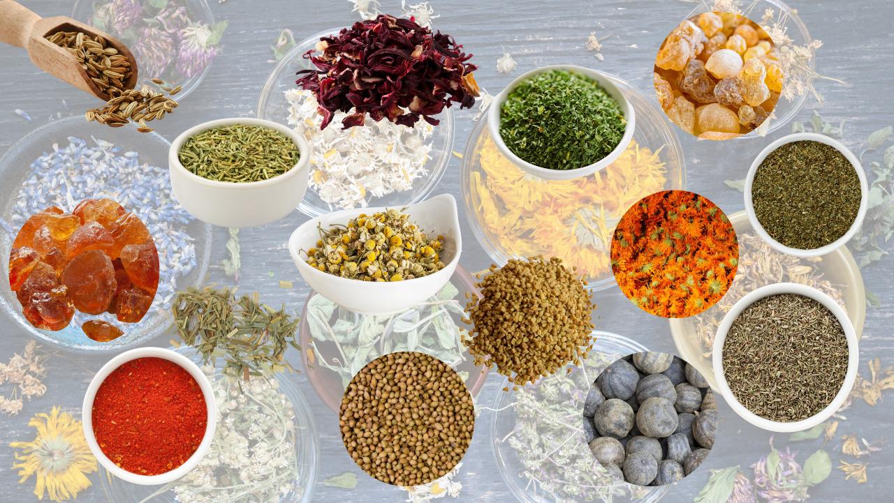 Selection of premium-quality Herbs, Spices, Seeds, Gum Arabic, and Gum Olibanum.